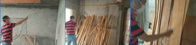 1、開(kāi)工前對(duì)所有可能與木料接觸的墻體部位進(jìn)行噴藥(具體指窗套、門(mén)套、墻裙、堤角線、各類柜子與墻接觸的墻面);墻體無(wú)木料部位噴1米以下!